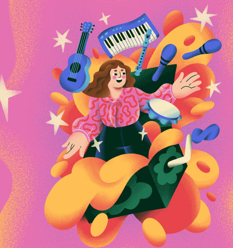 Let's make music together! In this workshop, children are encouraged to play instruments for the first time, without any prior musical knowledge, or to bring their own instrument to create collective music.