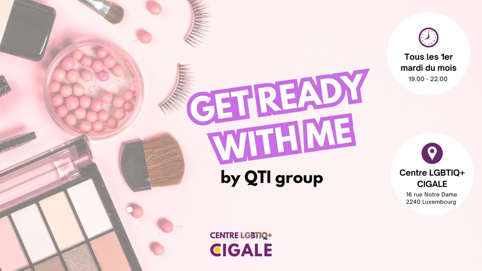 • 2026-08-04 19:00:00 2026-08-04 22:00:00 Europe/Paris Get ready with me by QTI The QTI (Queer, Trans, and Intersex people) empowerment group at Centre Cigale offers the QTI community in Luxembourg a safe space for meeting, sharing, and peer support. A convivial environment for experimenting with gender expression, exchanging advice and useful tips for every transition journey: makeup, coming out, life experiences… 16 rue Notre-Dame , 2240 Luxembourg, Luxembourg Centre LGBTIQ+ Cigale