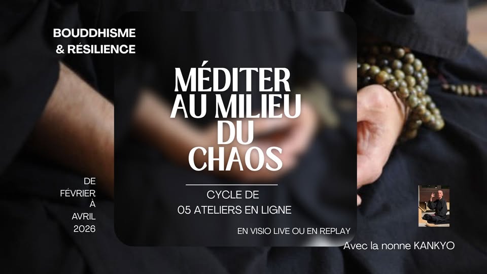 • 2026-02-22 11:00:00 2026-02-22 12:00:00 Europe/Paris Meditating in the Midst of Chaos: Buddhism and Resilience – 5 Practice Workshops (Online) Practical workshops in Zen meditation and resilience in the face of contemporary crises, led by Buddhist nun Kankyo Tannier. Each session starts with a guided meditation (zazen) and offers Buddhist insights and practical exercises to help navigate uncertain times. Topics include taming emotions, creating a new world, managing decline and rebirth, developing inner strength, and performing rituals for the Earth. Open to everyone, including beginners. Luxembourg Kankyo Tannier