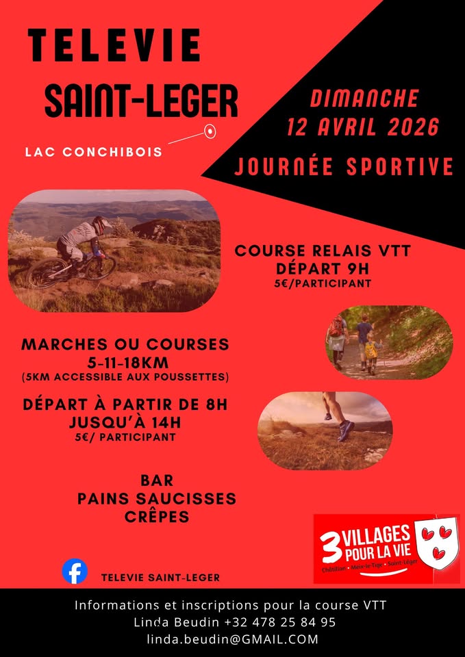 • 2026-04-11 23:00:00 2026-04-11 00:00:00 Europe/Paris Sports Day 3 Villages for Life Our sports day is back this Sunday, April 12th. Slightly modified as another event is being prepared for Saturday, May 30th. Save the dates! Saint-Léger Saint-Léger, Belgium Télévie Saint-Leger
