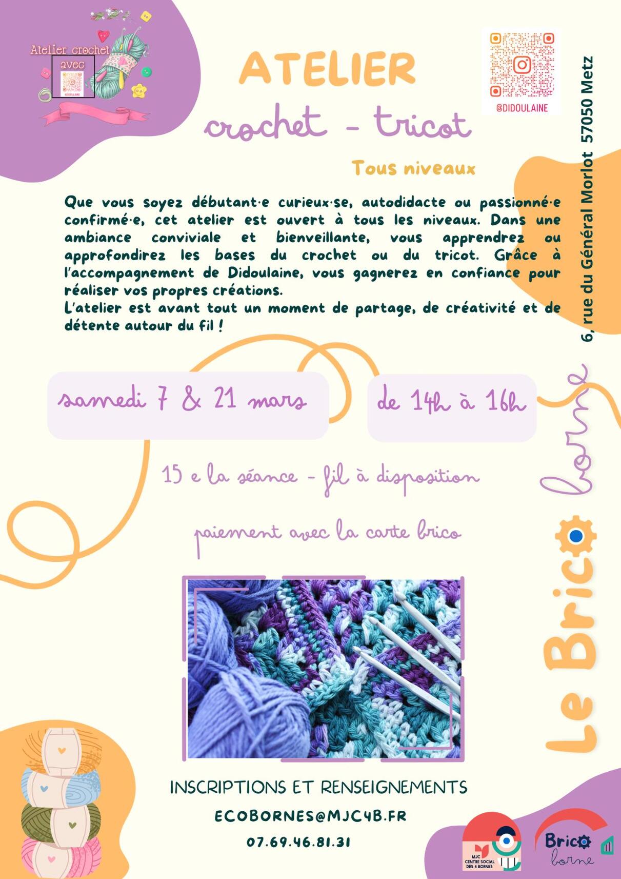 You will discover the basics of knitting and crochet in a friendly, relaxed, and supportive atmosphere.