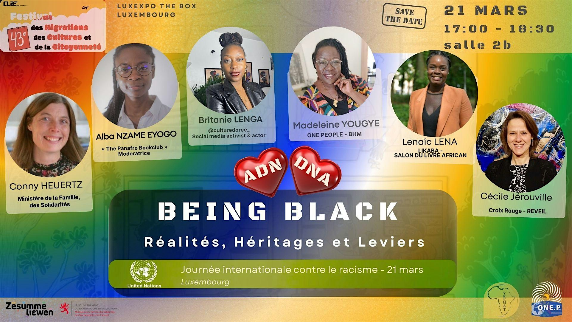One People is organizing the conference "Being Black: Realities, Legacies and Levers" on March 21st from 5:00 PM to 6:30 PM, as part of the Migration Festival at LuxExpo The Box. This event aims to be a space for dialogue and reflection on the realities experienced by people of African descent, addressing historical legacies, contemporary challenges, and levers for action to build a more inclusive society.