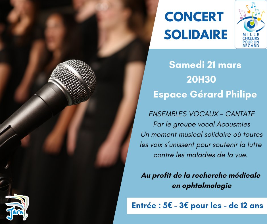 Organized at Espace Gérard Philipe. Organized by Mille Chœurs pour un Regard. The event supports ophthalmology medical research.
