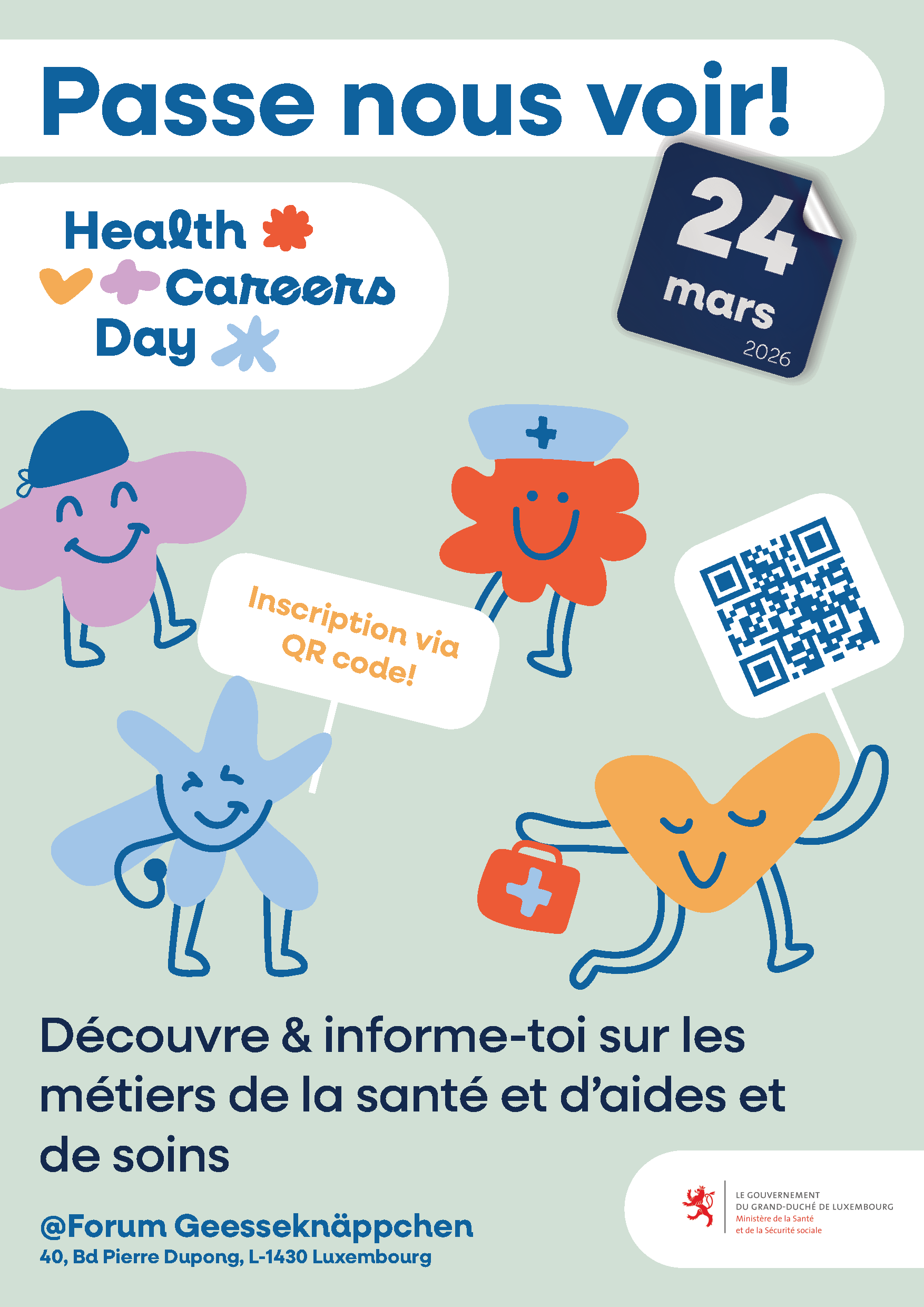 A day to meet professionals, discover available training courses in Luxembourg and abroad and explore career opportunities in the health sector.