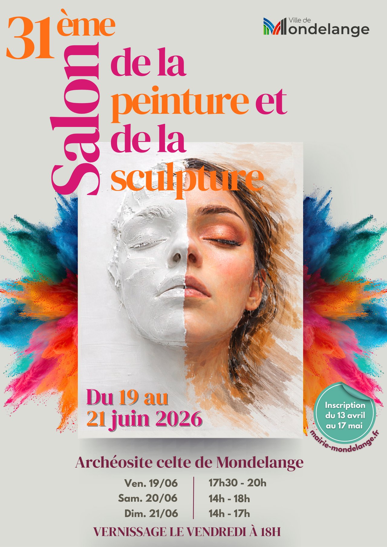 • 2026-04-13 2026-05-17 Europe/Paris 31st Painting and Sculpture Salon The City of Mondelange is organizing its 31st Painting and Sculpture Salon. Calling all painters and sculptors: come exhibit your works and compete for one of the prestigious awards given by the jury. Rue des Ponts 57300 Mondelange Ville de Mondelange