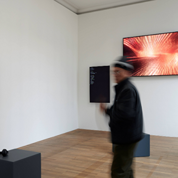 Casino Luxembourg offers a late-night opening outside of its daily opening hours, meaning an extended opening to allow you to take your time during your visit to the premises and the current exhibitions, here in this case, the group exhibitions Screentime/s (photo: Marc Domage), Post— and Notes on Weathering by Bianca Bondi.