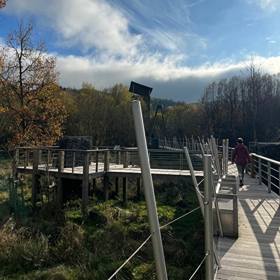 The route begins with the Passerelle des Oiseaux, 150 meters of wood suspended above the Sûre. Guaranteed shivers and breathtaking panoramas! Educational panels line the path to reveal all the secrets of the local wildlife. Next, head towards the Anlier Forest, one of Belgium's largest forests and designated a Natural Park: here, only the birdsong and the rays of the sun filtering through the pines accompany you.