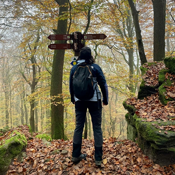 We finish with a unique adventure: the B8 trail, the longest circular route in Berdorf! This circuit takes you through fields, forests, and rock formations, with spectacular views of several valleys.