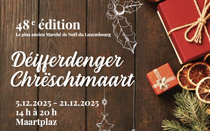 Since 1977, the Christmas market of Differdange has been lighting up the eyes of both young and old 🎁! More than 30 chalets invite you into the magic of Christmas: decorations, crafts, sweet and savory treats 😋… in short, enough to indulge and enjoy yourself.