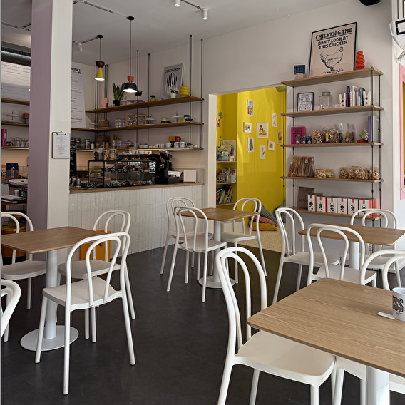 L’espace est lumineux, cosy, avec une déco qui rappelle les coffee shops berlinois. Parfait pour bosser, papoter, bouquiner… ou juste profiter du moment.