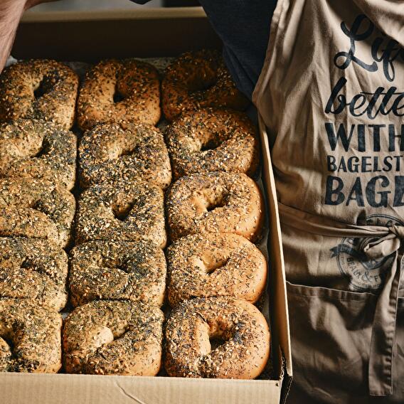 Chez Bagelstein, les bagels sont préparés sous tes yeux, avec des pains et pâtisseries 100% faits maison par leurs artisans boulangers et pâtissiers.
