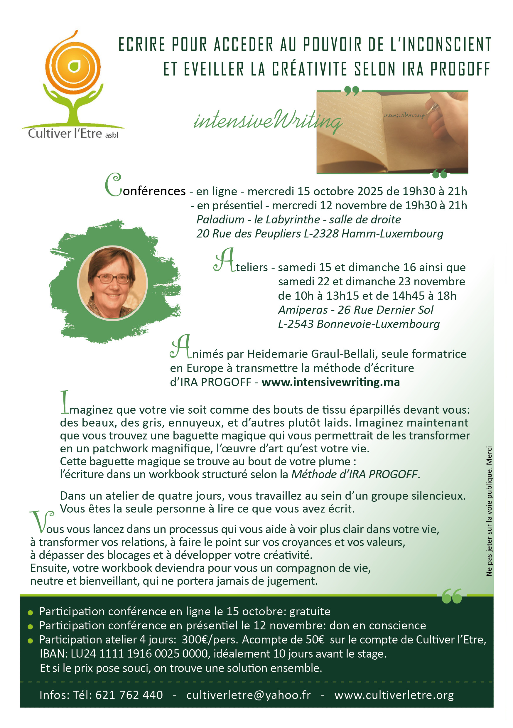 Animé par Heidemarie Graul-Bellali, seule formatrice en Europe à transmettre la méthode d’écriture d’IRA PROGOFF.