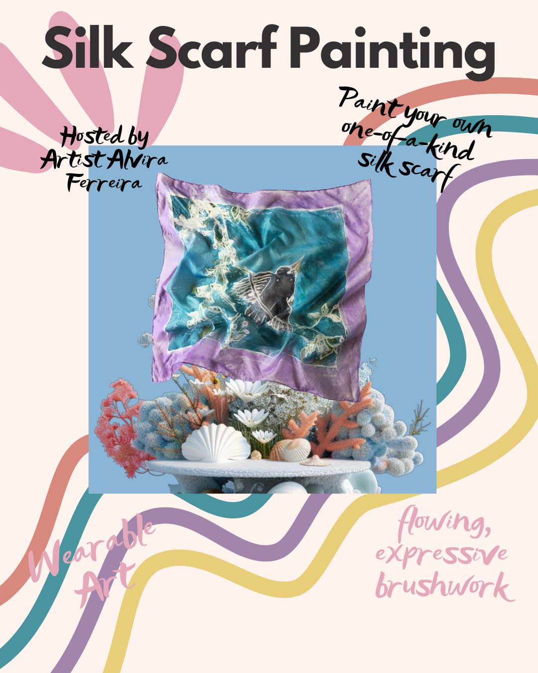 Créez votre propre foulard en soie peint à la main lors de cet atelier immersif animé par l'artiste Alvira Ferreira. Idéal pour quiconque souhaite explorer l'art de l'expression à travers ses vêtements, cet atelier vous guidera dans la transformation d'une luxueuse soie en une pièce unique.