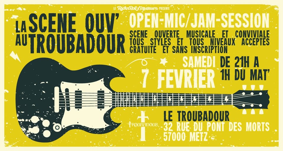 Vous êtes musicien·ne·s et cherchez un lieu pour jouer et rencontrer d'autres musicien·ne·s ? Ou vous aimez découvrir des artistes locaux ? Rendez-vous à la Scène Ouv' au Troubadour à Metz !