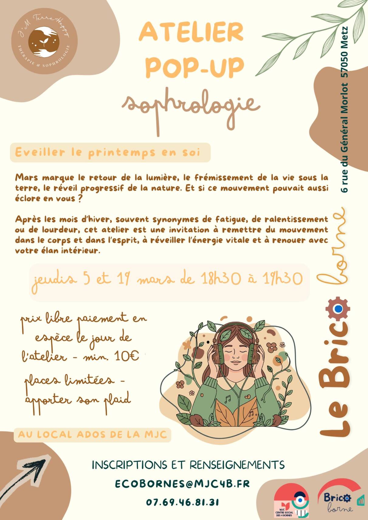 Mars marque le retour de la lumière, le frémissement de la vie sous la terre, le réveil progressif de la nature. Après les mois d'hiver, souvent synonymes de fatigue, de ralentissement ou de lourdeur, cet atelier est une invitation à remettre du mouvement dans le corps et dans l'esprit, à réveiller l'énergie vitale et à renouer avec votre élan intérieur.