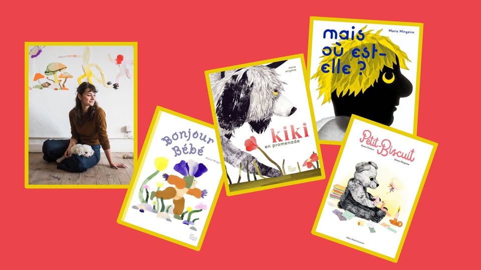Marie Mirgaine est une artiste éclectique qui aime allier découpage, collage, aquarelle, volumes et bien d'autres techniques dans ses créations. Elle est diplômée de la Haute École des Arts du Rhin. Elle a publié plusieurs albums aux éditions Les Fourmis Rouges, dont notamment "Mais où est-elle" en 2022, "Bonjour Bébé" en 2025 ou encore "Fémur Immo" en 2021, album pour lequel elle avait créé une magnifique vitrine au Préau.