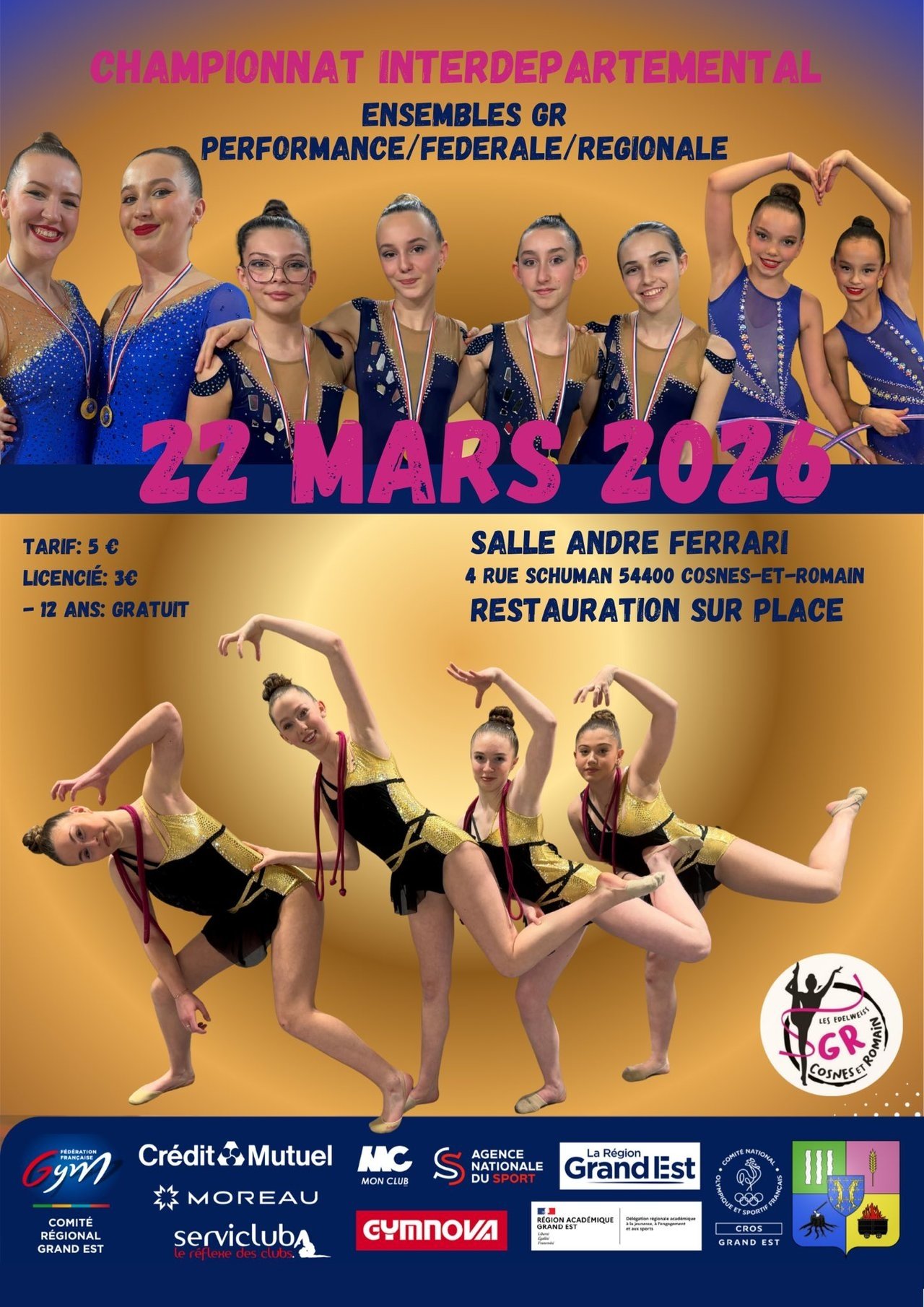 - Championnat interdépartemental des ensembles, avec la participation des clubs de Moselle et Meurthe-et-Moselle (plus de 200 gymnastes attendus).