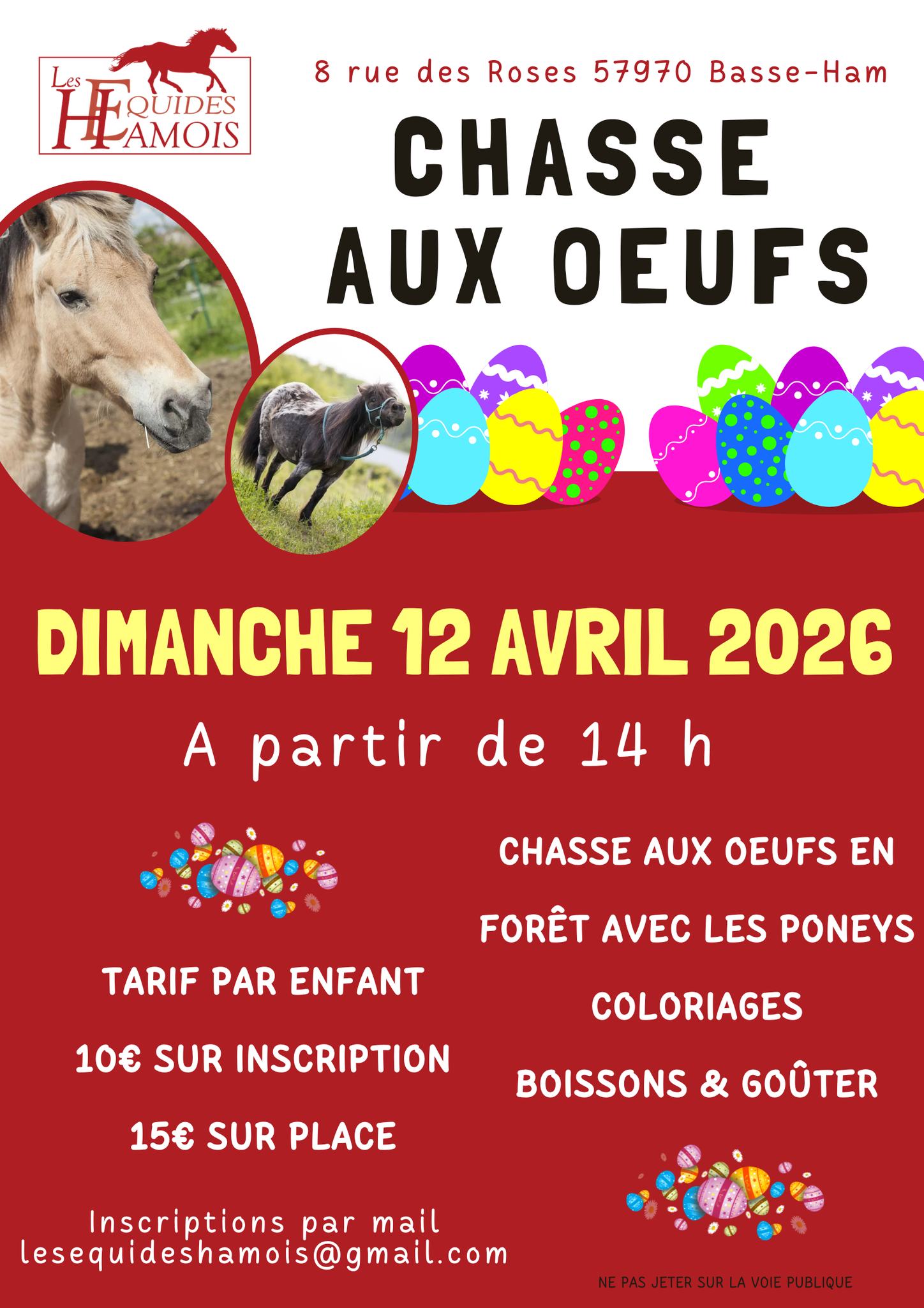 • 2026-04-12 2026-04-12 Europe/Paris Chasse aux œufs Chasse aux œufs en forêt avec le poney. Coloriage. 8 rue des roses Basse-Ham 57970 FRANCE Pays Thionvillois Tourisme