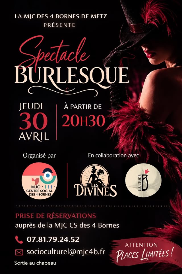 Envie d’une soirée mêlant glamour, audace et créativité ? La MJC CS vous invite à plonger dans l’univers envoûtant du burlesque !